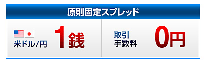 | スプレッド | 原則固定 | 米ドル/円 | ユーロ/円 | ポンド/円 | 豪ドル/円 | ユーロドル |